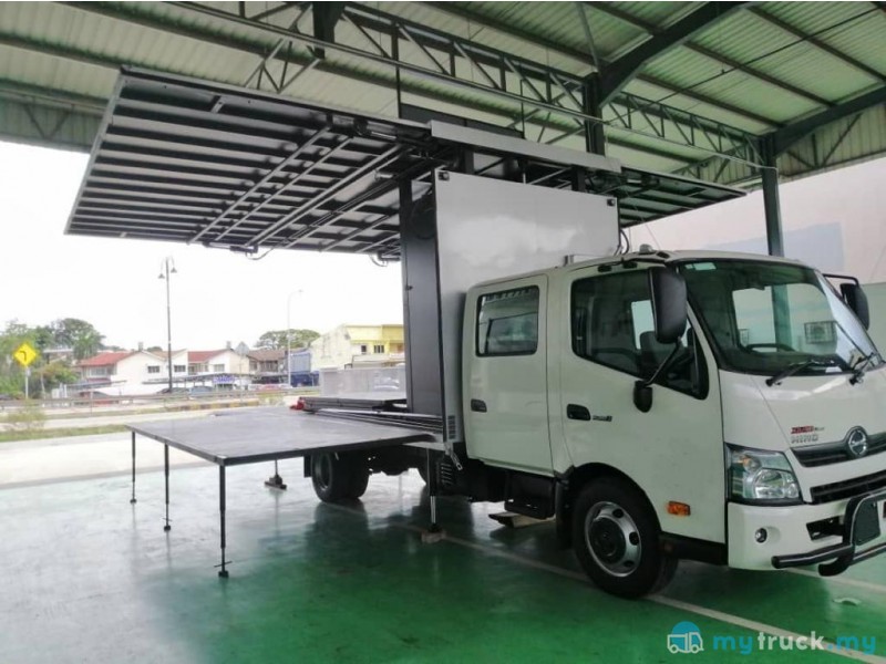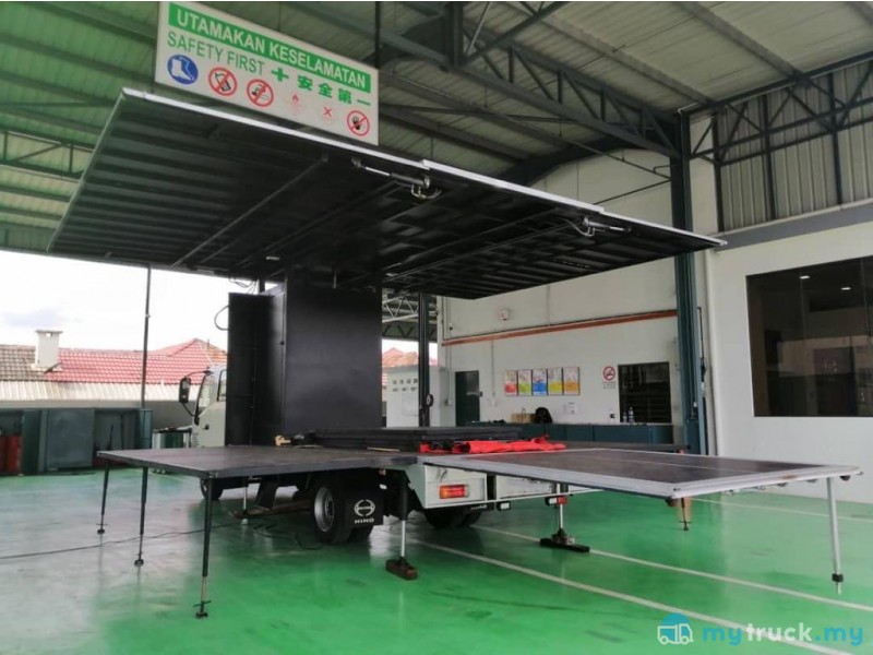 Description * BDM 7,500KG * Engine 4009cc * Tahun 2019/20 * Enjin Diesel Hijau * Lorry Cab ORIGINAL paint !!! * Box Body Sesuai untuk event2 exco, Station Tv , Radio dan lain2 lain yg bersesuaian * Body can open up like a stage can do performance, talk, Event promotion and etc etc.... * Body import from China manufacturing.